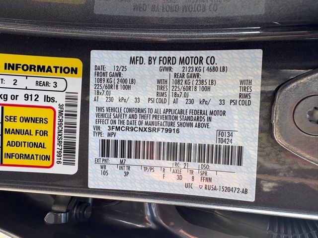 4-Wheel Disc Brakes, ABS brakes, B&O Sound System by Bang & Olufsen, Brake assist, Connected Navigation, Dual front impact airbags, Dual front side impact airbags, Emergency communication system: SYNC 4 911 Assist, Equipment Group 300A, Four wheel independent suspension, Front anti-roll bar, Front dual zone A/C, Front fog lights, Fully automatic headlights, HD Radio, Heated steering wheel, Knee airbag, Low tire pressure warning, Memory seat, Occupant sensing airbag, Outer Banks Tech Package+, Overhead airbag, Power driver seat, Rain sensing wipers, Rear anti-roll bar, Remote keyless entry, Reverse Brake Assist, Speed-sensing steering, Steering wheel mounted audio controls, SYNC 4 w/Enhanced Voice Recognition, Traction control, Wheels: 18 Ebony Black-Painted Aluminum. 2025 Ford Bronco Sport Outer Banks Gray Metallic 1.5L EcoBoost 8-Speed Automatic 4WD Factory MSRP: $40,985 Dealer Discount of $2,360 off MSRP Price does not include tax, tag and admin fees. Price includes: $1000 - Bonus Cash. Exp. 03/31/2026 $2000 - Retail Customer Cash. Exp. 03/31/2026