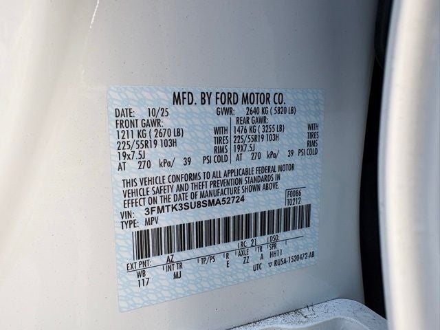 Air Conditioning, Alloy wheels, Apple CarPlay/Android Auto, Auto High-beam Headlights, Auto-dimming Rear-View mirror, Automatic temperature control, Brake assist, Bumpers: body-color, Delay-off headlights, Electronic Stability Control, Equipment Group 300A Standard Package, Exterior Parking Camera Rear, Four wheel independent suspension, Front Bucket Seats, Front Center Armrest, Front dual zone A/C, Fully automatic headlights, Garage door transmitter, Heated door mirrors, Heated front seats, Heated steering wheel, Heated/Ventilated Perforated ActiveX Bucket Seats, Internet access capable: FordPass Connect, Memory seat, Mobile Power Cord (120V/240V), Navigation system: Connected Navigation, Panoramic Fixed-Glass Roof, Power door mirrors, Power driver seat, Power Liftgate, Power passenger seat, Power steering, Power windows, Radio: B&O Sound System by Bang & Olufsen, Rain sensing wipers, Rear window defroster, Rear window wiper, Remote keyless entry, SiriusXM w/360L, Speed-sensing steering, Speed-Sensitive Wipers, Split folding rear seat, Spoiler, SYNC 4A w/Enhanced Voice Recognition, Traction control, Variably intermittent wipers, Ventilated front seats, Wheels: 19 Bright Machined-Face Aluminum. 2025 Ford Mustang Mach-E Premium White Metallic Dual Electric Motor Single-Speed Automatic AWD Factory MSRP: $54,410 Dealer Discount of $3,538 off MSRP Price does not include tax, tag and admin fees. Price includes: $4000 - Retail Customer Cash. Exp. 03/31/2026